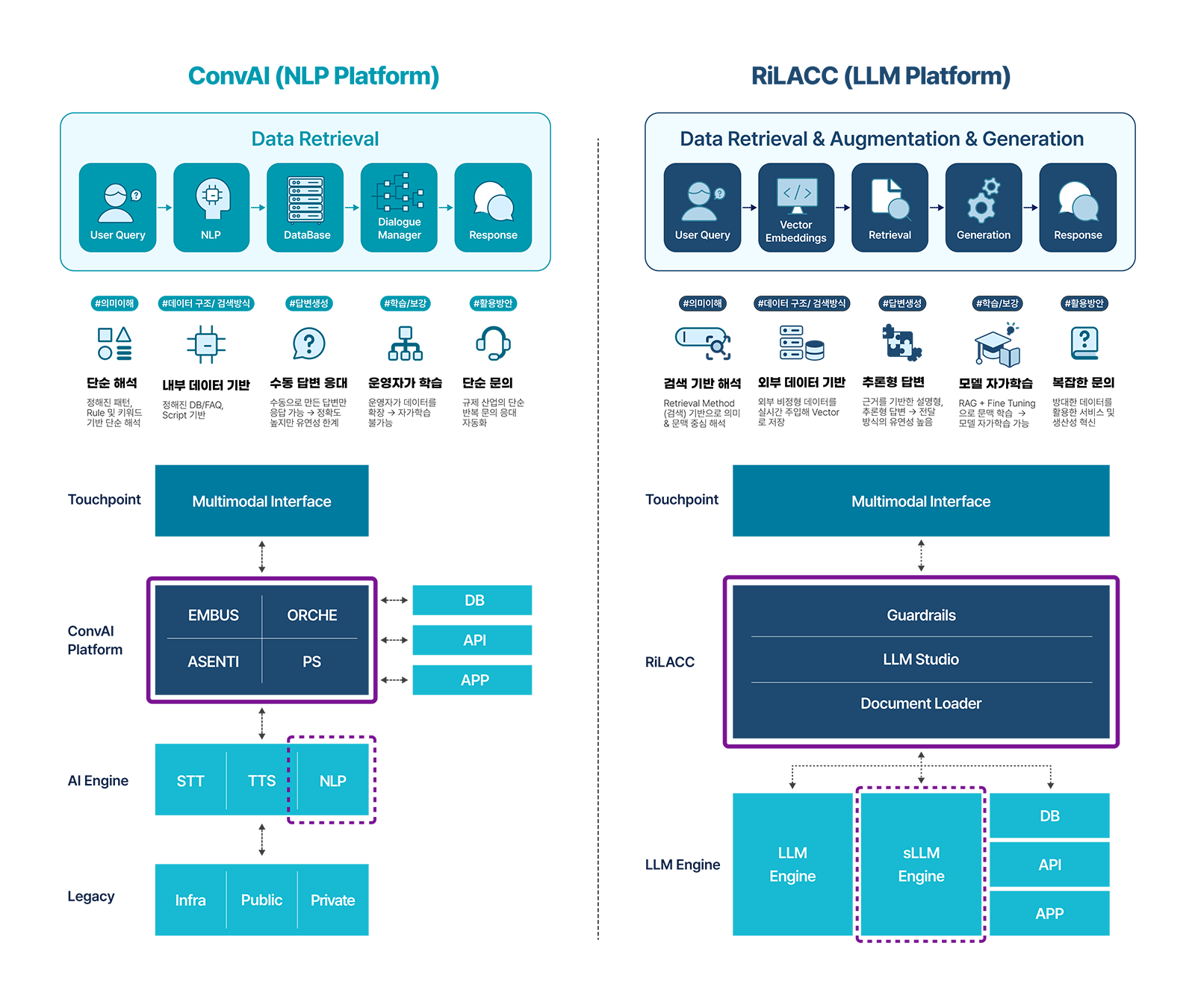 기존 콜 인프라(레거시)와 최신 AI 엔진을 연결하고,